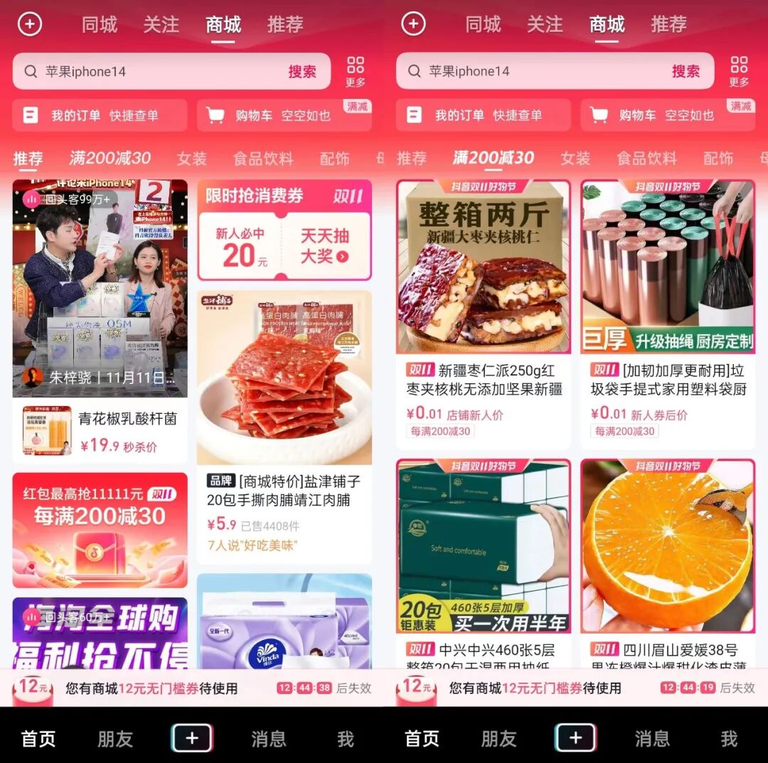 伴随着互联网的成熟化发展,流量红利逐渐消失,存量时代到来,用户留存和用户转化成为互联网平台“更上一层楼”的关键考量因素,内容和电商的进一步融合则是内容平台和电商平台的共同发展方向。早期以广告业务为主的内容平台多布局了电商业务,并在持续拓展自身电商边界。以抖音为例,继2022年6月,抖音商城成为和短视频及直播并列的重要流量入口之后,2022年10月31日,“抖音双11好物节”正式上线,抖音更是集中发力商城和货架电商,提供消费券、货品补贴和流量补贴等福利,支持商城经营。双11大促期间,用户通过抖音商城,可以同时看到商品和带货直播间。![]()