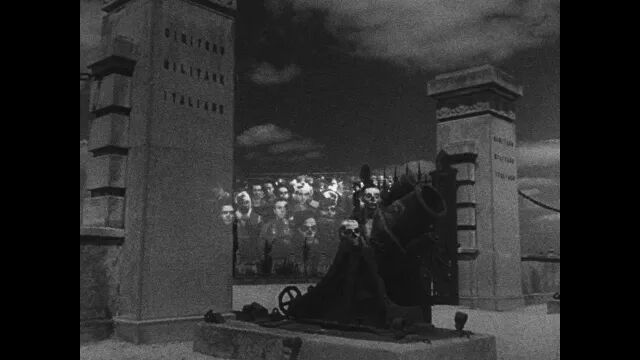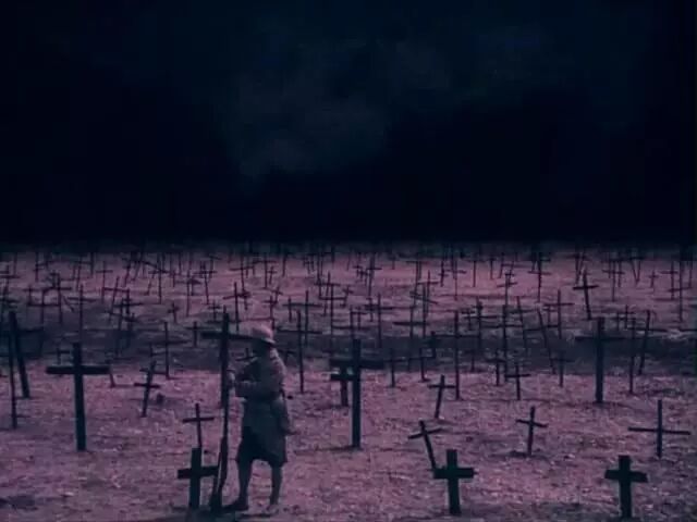冈斯不遗余力地想要在观众的头脑里刻画这些形象,于是他特别在影片中运用多重叠印,其实就是加重视觉印象,填满观众的眼球,以至于这些形象填满眼睛,溢出眼皮。这些无畏的片段继承了1927年《拿破仑》的经验,那部史诗级大片甚至有些镜头运用了七重叠印,要用三块拼接的屏幕放映。这些效果不仅是想要超越媒介,更想要挑战观众的生理极限。冈斯想要通过情感上的冲击来让人们对一战那段历史敏感。