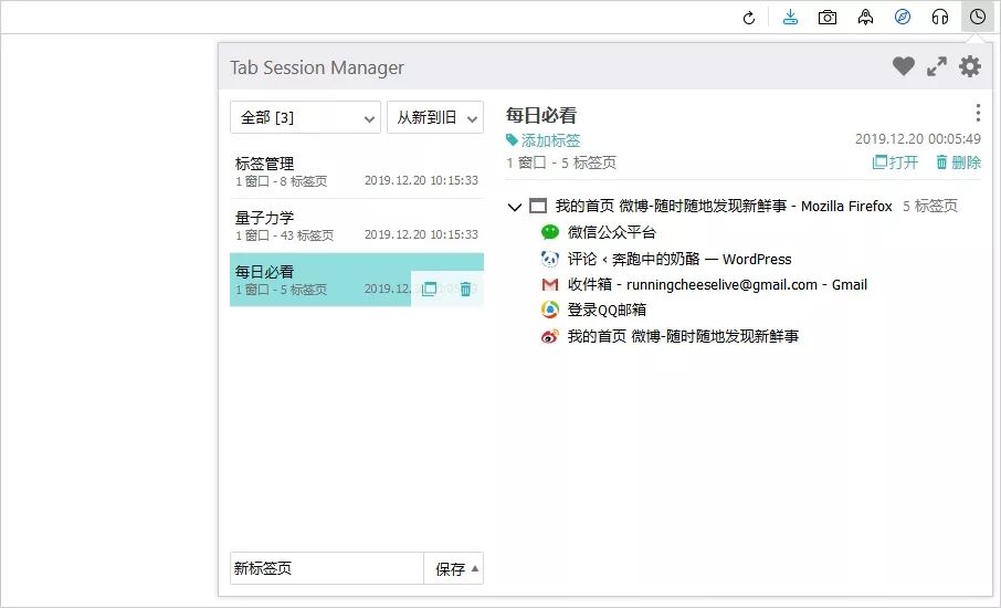 如果说「稍后阅读」用于保存一个或者几个标签页的话,那么「会话保存」就是针对一个项目或者多个相同标签页。