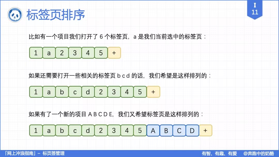 如果我们做到了不同项目的标签页,以项目为单位,从左到右依次排列,标签页管理就已经做好一半了。