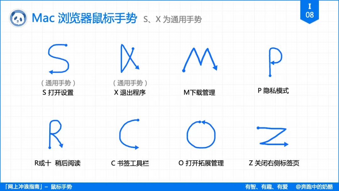 它的原理是通过划出各种各样的手势来代替快捷键,所以后来也开发出了能够在系统上使用的全局鼠标手势。