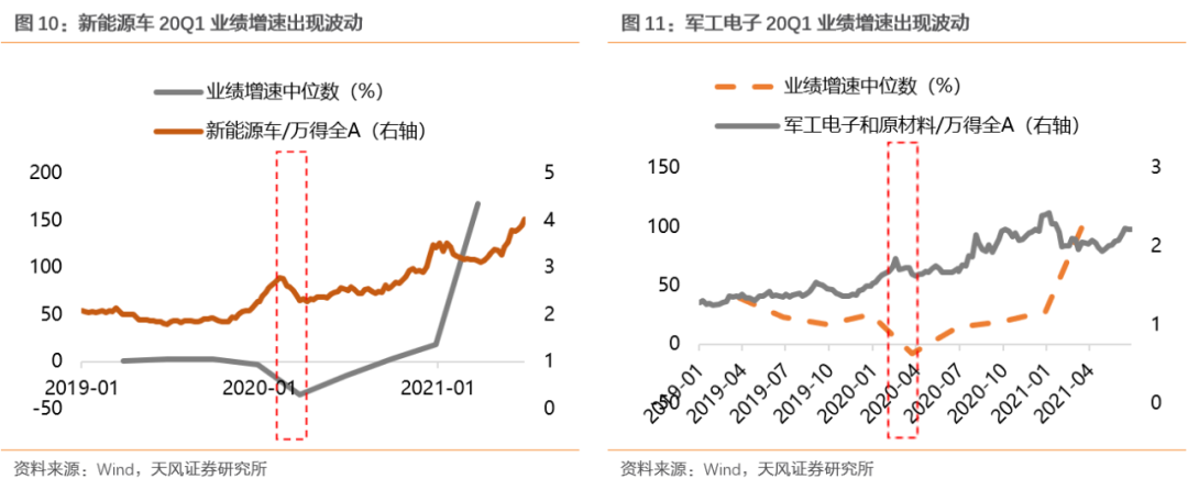 尽管产业周期趋势明确下成长板块的景气度持续性较强,但在其中可能会出现阶段性的波动使得市场对行业的基本面存在一定的担忧,但在产业周期的支撑下,这种波动引发的担忧很快会被证伪。2013年Q2-Q3智能手机出货量有所回落,智能手机市占率也下滑至66%附近,对应消费电子业绩增速从Q1的22%下滑至Q3的3%附近。但随着智能手机出货量与市占率在Q3重新反弹,消费电子的业绩增速在2013Q4重新回归18%附近,消费电子景气度的扰动被最终证伪。(1)疫情冲击下20Q1新能源车、军工电子、光伏景气度阶段性支撑走弱在疫情冲击下,军工电子、新能源车等景气板块业绩增速显著回落,这也成为了诱发成长板块调整的重要原因之一。以新能源车为例,在疫情冲击下Q1供需双降,对应业绩增速也大幅回落,基本面的波动成为股价波动的因素之一,但随着疫情消退生产恢复,供需两端重新走强,新能源车业绩增速也在Q2重新回归上升通道,这也验证了产业方向并未因为短期波动而改变。(2)21Q1上游原材料硅料价格上涨引发光伏中下游需求走弱担忧