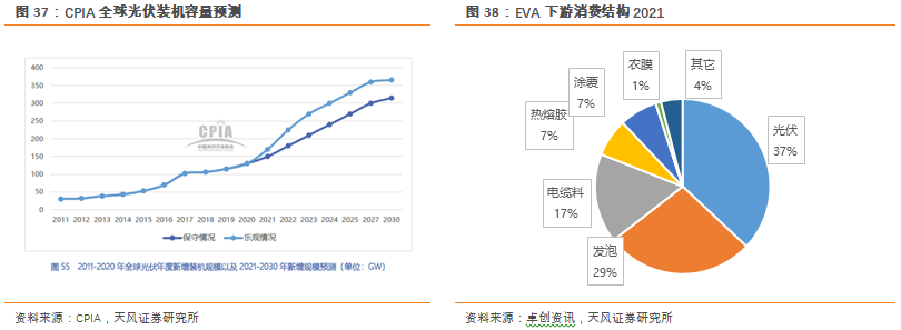 公司自下而上延伸产业链,奠定垂直一体化优势,2022年1月13日,浙石化二期全面投产,最终形成了4000万吨炼油、900万吨PX、280万吨乙烯的生产能力,下游产品多元化布局,大大提高了公司的抗周期波动及抗风险能力。聚酯产业格局基本形成,行业壁垒进一步提高,乙烯产业链至暗时刻已过,未来2-3年新增产能有望放缓。随着我国多套大型炼化一体化和煤化工深加工项目的建成投产,特别是2021-2022年是全球乙烯产能投放的高峰期,其中2021年新增产能达到1000万吨,2022年预计新增产能达到1011万吨,行业竞争压力明显增大。高端新材料是公司全产业链布局的重要抓手,公司持续看好光伏赛道,二期 EVA 项目稳步推进;20 万吨 DMC 产能释放,受益于锂电需求,DMC 仍有较大增量空间。![]()