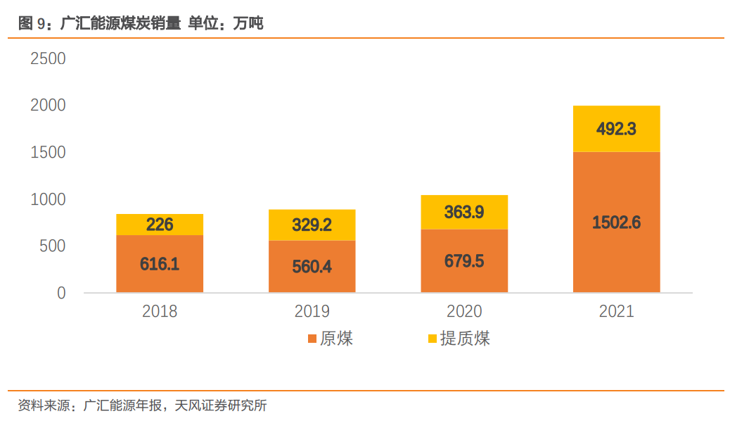 公司是国内少有具备石油、天然气、煤炭三种传统能源资源的企业。随着公司2012 年推进白石湖煤矿的手续办理和产能建设,煤炭业务渐渐发力。2013年,公司向下游煤化工领域进军,投产了哈密新能源工厂,生产甲醇以及煤制LNG。2013年,吉木乃工厂的正式通气,实现了民营企业境外拿回油气资源零的突破,气源是哈萨克斯坦斋桑油气田。2016年启东港口进入试运行阶段是公司发展历程的分水岭。首先,启东投产后以及随着后期储罐的逐步扩建,天然气收入得到了与以往不同量级的增长;其次,清洁炼化项目的投产给煤化工业务带来了增量,主要产品是煤焦油、提质煤以及副产荒煤气。目前有4个在建项目,有望为各项业务都带来增长。5号及6号储罐的容量都是20万立方米,为启东港口的周转能力和贸易量提供增量;清洁炼化项目副产的荒煤气可以用于40万吨乙二醇项目;另外,马朗煤矿在2021年10月取得探矿权证,有可能在后续释放产量。2.1. 供应弹性不足,煤炭行业高景气有望继续维持2021年在经济复苏与出口拉动的情况下,能源需求达到历史中较高位置,供应弹性的不足导致动力煤社会库存大幅去化,能源储备安全垫下降,煤炭价格创出历史最高记录,而随着四季度强保供政策推出,市场缺口逐渐弥补,社会库存开始累积,“煤荒”问题得以缓和,然而能源供应问题却并未缓解,国内产能增量有限,过度挖掘有较高概率透支未来生产增量;海外地缘冲突不断,国际能源贸易体系进一步恶化,供需关系继续失衡。内忧外患之下,我们认为优先保证电煤端的能源稳定或许是不得已而为之,现货价格弹性扩大也是较大概率的逻辑结果。而新疆煤炭由于运输距离的问题,曾经长期独立于内陆市场之外,随着甘肃、宁夏煤炭产量的下降以及煤价的提升,新疆煤炭出疆逐渐增加,尤其是哈密、准东地区,从而使得新疆市场开始跟随内地市场波动,产销量也与日俱增。2021年新疆煤炭产量3.2亿吨,同比增长18%,我们预计在保供增产的政策推动下,2022年新疆煤炭产销量或将继续增长。2.2. 储量充足,产量在保供背景下仍有较大增长空间公司矿区主要分布在新疆哈密地区淖毛湖周边,共有白石湖煤矿、马朗煤矿、东部矿区三大部分。主要煤种包括油、气比例高的“油气煤”、优质的动力煤和化工原料用煤。公司在哈密淖毛湖地区的煤炭资源的特点是煤层结构简单,属于中厚-特厚煤层,覆盖层薄,80%以上属于露天开采项目,开采难度低,成本低。2.3. 产销扩大营收增加,利润增长受益于煤价上行周期2016年继续受煤炭行业供给侧改革不断深入,去产能力度持续加大,销售区域萎缩,重点客户竞价激烈,淖毛湖周边兰炭厂大面积停产等不利因素业绩到达低谷。后随着我国煤炭行业去产能的不断深化,煤炭行业由政策主导转换为市场调节,公司抓住机遇,2017年与甘肃大唐燃料公司、酒钢集团、中国铝业等大型用煤企业建立了长期战略合作关系,保证了公司煤炭业务的稳定性。后煤炭行业以稳定推进改革为基调,公司销量逐年增加,稳定发展。2021年原煤销售量为1502.63万吨,同比增长121.13%;提质煤销售量为 492.28万吨,
