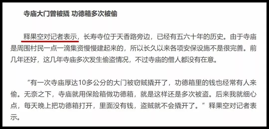 恶性命案发生后,众多法师居士指出,长寿寺多年来频遭当地村霸、恶势力欺压,甚至常年遭闲散村民入寺偷窃。早在2013年6月,网易新闻就曾刊发《南昌寺庙200公斤重铜佛像被盗,僧人忍无可忍报警》,记者联系长寿寺调查,当时回答记者提问的正是后来的遇害人果空法师。法师称“之前寺院也经常被偷,我们都选择隐忍,没有报案,这次竟然把寺里唯一的一尊铜佛像偷走了,我们忍无可忍,就选择了报警”。文末表示“目前,湖坊镇派出所正在对长寿寺铜像被偷一事进行调查”,但此事后无下文。