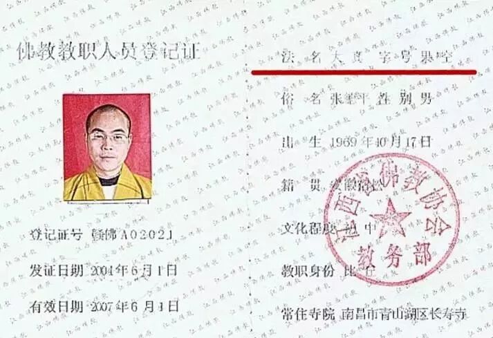 南昌长寿寺遇害法师果空法师佛教教职人员登记证