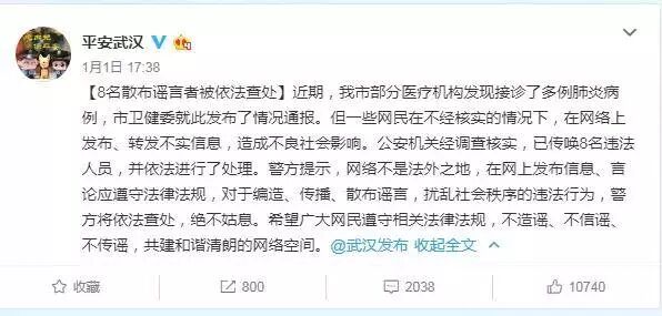 八名涉嫌造谣者被武汉警方处罚一事在网上很受关注,毕竟这是关系这次疫情扩散的起点。