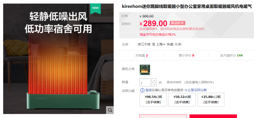 除此之外,前200名下单用户,我们将赠送价值289元的kireehom迷你桌面取暖器一个。