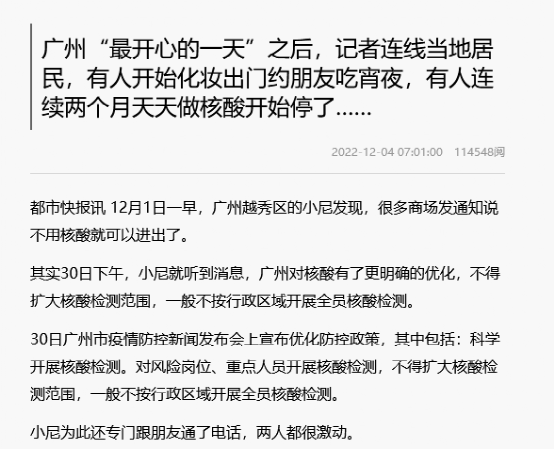 再者,降低群众对一蹴而就放开的预期,要给予试点城市时间和耐心,疫情政策调整是一个复杂而动态的系统,石家庄的吃螃蟹之路就是因为舆论的过度关注而草草收场,希望天性更加豁达、乐观的广州市民们能够探索出适合城市特点的疫情防控新方式。