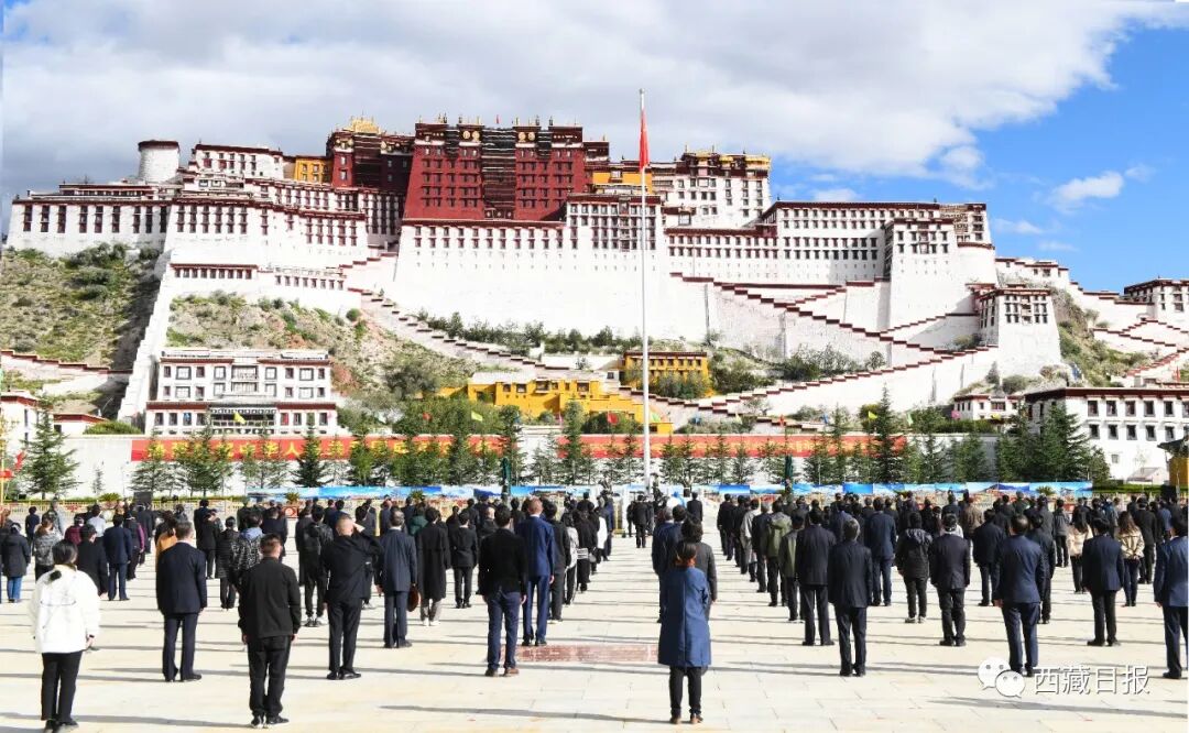 10月1日上午,西藏自治区庆祝中华人民共和国成立73周年“升国旗、唱国歌”仪式在拉萨布达拉宫广场举行。记者 李洲 摄