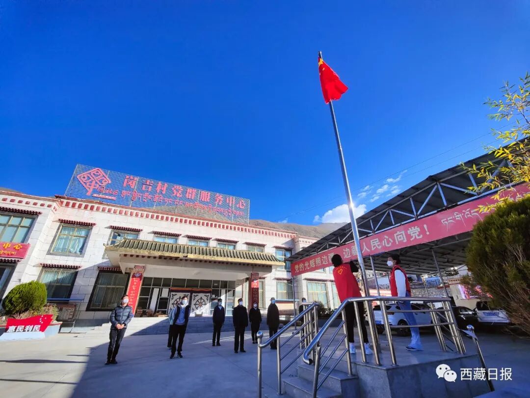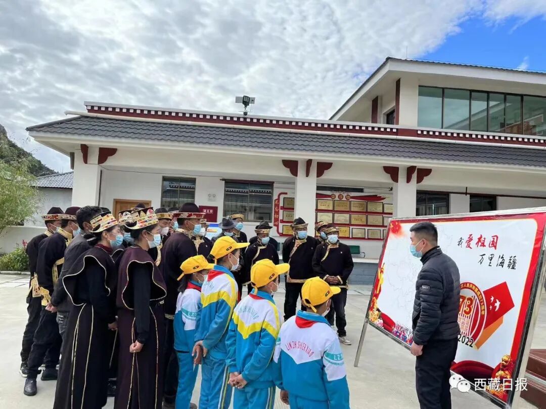 那曲市巴青县江绵乡门普地亚村正在举行升国旗仪式。日昂 摄