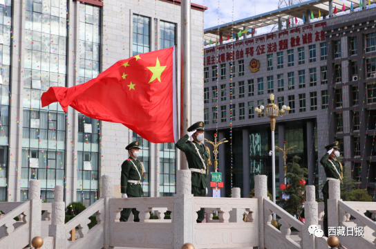 10月1日上午10时,日喀则市举行庆祝中华人民共和国成立73周年“升国旗、唱国歌”仪式。