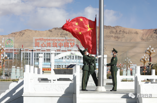10月1日,天朗气清、红旗飘扬,处处洋溢着欢乐喜庆的节日气氛,山南市“升国旗、唱国歌”仪式在乃东中学隆重举行。王志伟 摄
