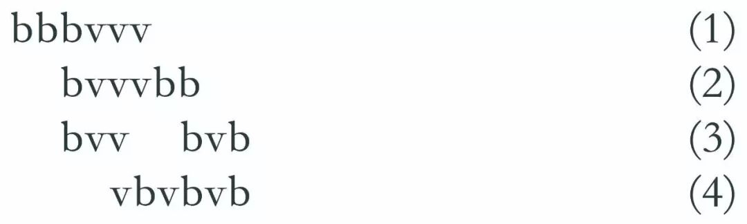 然后移动最左二子至最右,成 (2) ,再移动二子成 (3) ,再移动二子成 (4)。