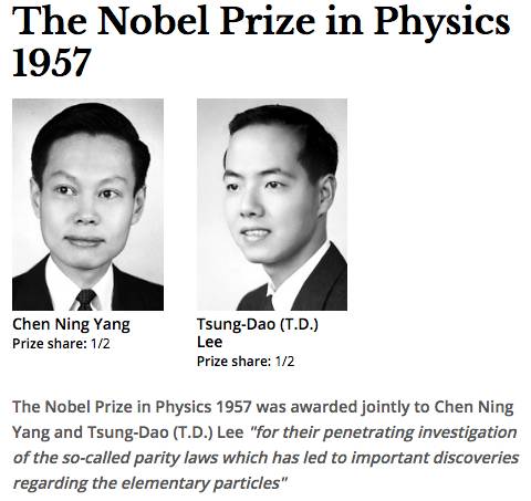 1957年,中国公民杨振宁与李政道获得诺贝尔物理学奖。杨振宁在宴会演讲中讲述了作为一名中国科学家的他,是近代中国与西方两种文化的冲突和协调的产物[2]。