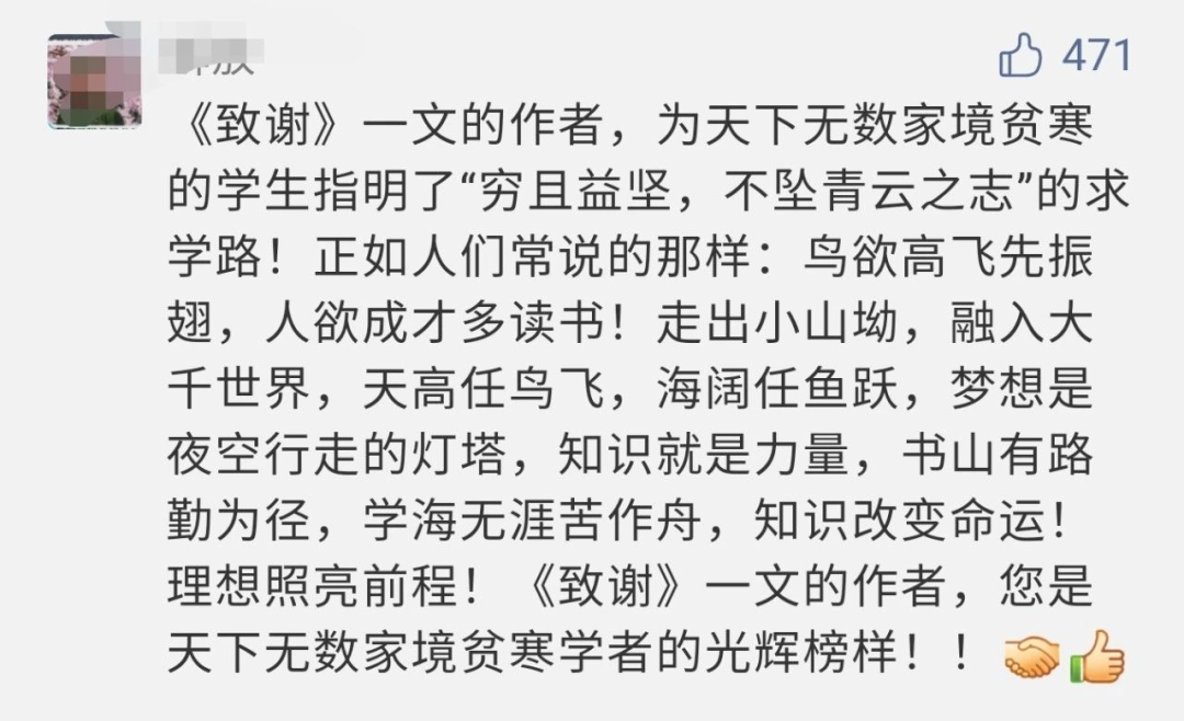他当时从学校放假回来,我去他屋里一看,老鼠在土墙上打了一个洞,泥巴都落到他床上。 他高三暑假已会编程挣生活费了。 他读完博士回来,穿着依旧很朴素。走在外面被人看到了,有人私下嘀咕说“还说那个娃儿是读了博士回来的哦,没想到穿成那样(很朴素)。 ……