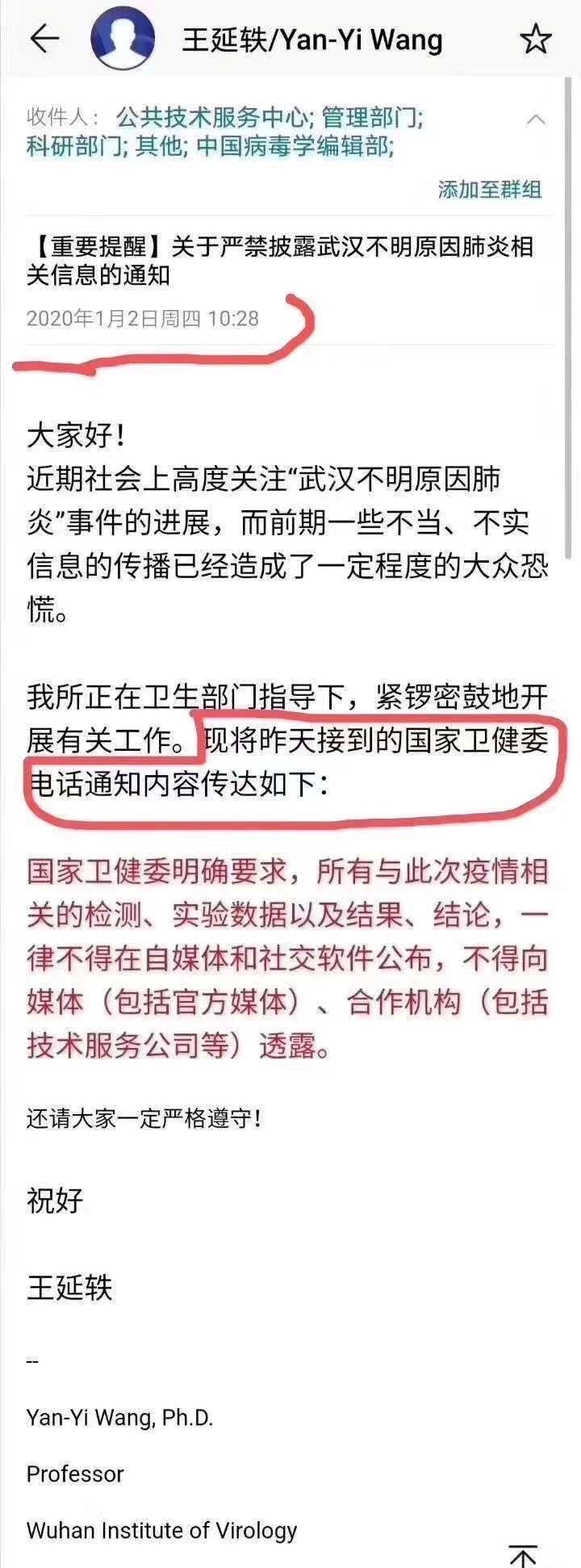 今日,网络上突然出现王延轶给病毒所全员发布邮件的截图。