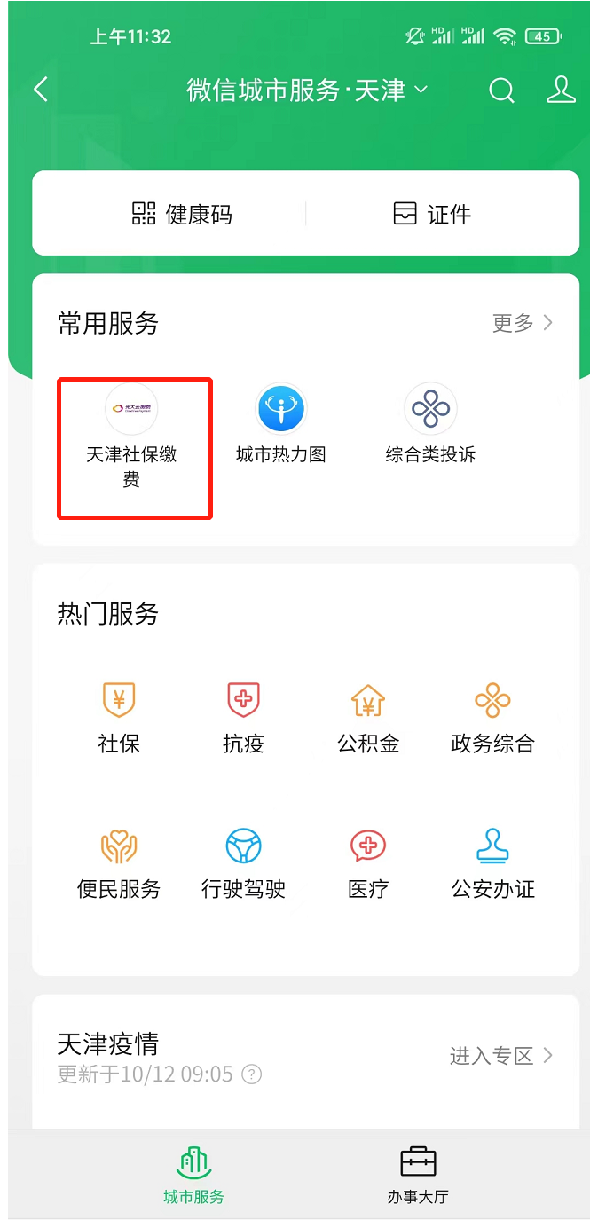 【步骤一】,点击“服务”,进入后点击“城市服务”-“社保”