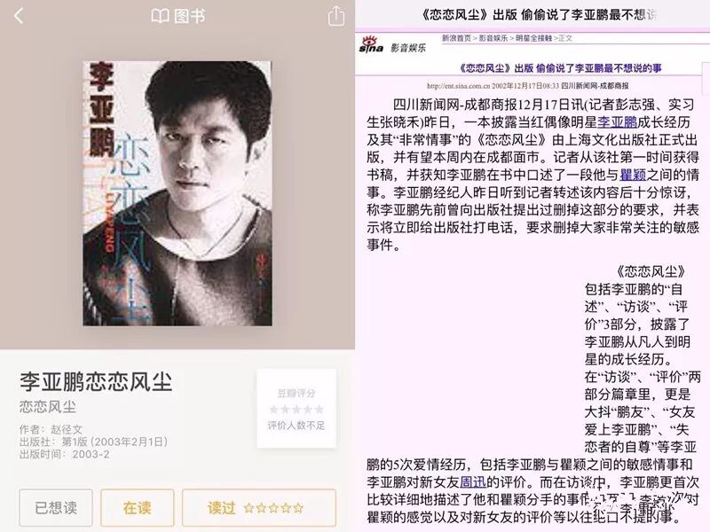 李亚鹏曾经有一本书叫《恋恋风尘》,详细记录了在王菲之前的他的五任前女友。