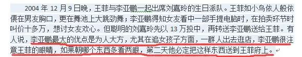 ▲有段时间,李亚鹏特别多地向媒体描述王菲在家相夫教子,乐于做安逸太太的生活。