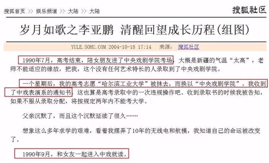 第一任是前文提到的,李亚鹏陪考中戏的初恋女友,已经查无实证,淹没在茫茫人海。
