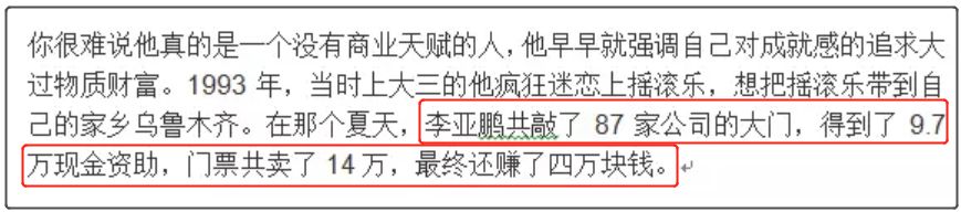 还有一件事,也是李亚鹏经常高谈阔论的光辉战绩,不过这件事也带着浓浓的李亚鹏式的江湖生意情怀。