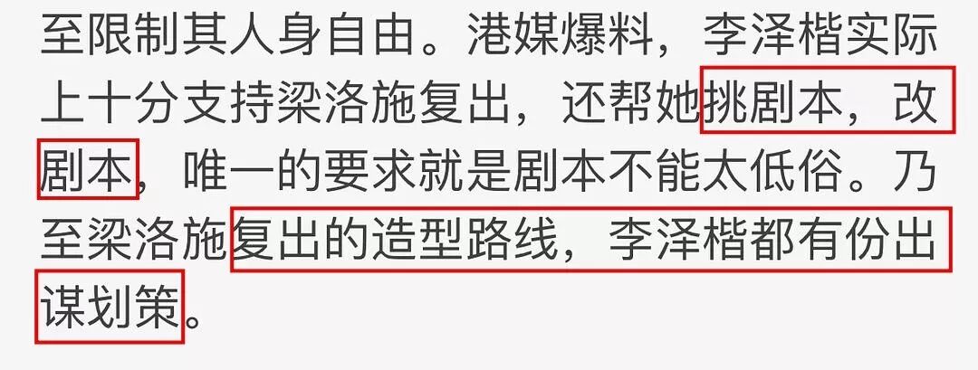 ▲虽然港媒说的很委婉,但言下之意不就是梁洛施复出,剧本都要经过李泽楷审核,连造型路线,都要经他批准。