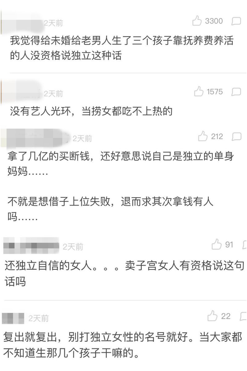 ▲而大家群嘲的点,自然也都集中在她未婚给李嘉诚的次子李泽楷生下了3个小孩这件事上,有人说收了三亿,有人说收了五十亿,总之,她这辈子是不用为钱愁了。