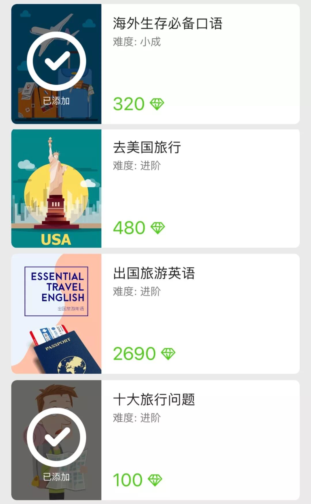 而且还特别争取了粉丝福利!只要点击“阅读原文”购买,就能额外获得价值359元的“旅游大礼包”——内含4门绿钻口语课。感觉学完出国都不带虚的了~