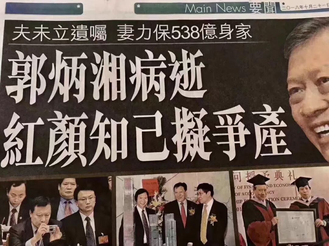 平地一声雷,10月20日,2018年福布斯全球富豪榜排名第190名的新鸿基大公子郭炳湘去世,享年68岁,隔天,报纸的标题是这样的: