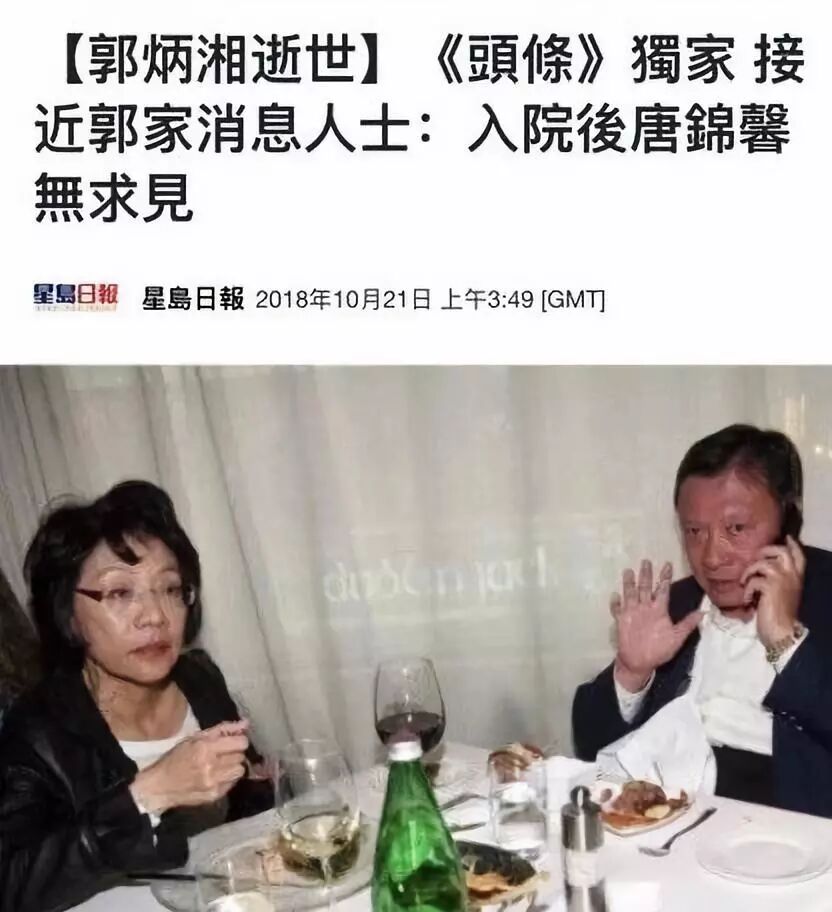 8月在深水湾道21号大宅内摔倒,经两个月昏迷的郭家大少爷终于不治,这位大半生都活在风口浪尖,经历过惊天大绑架、数十年争产案的男人因为没有遗嘱,红知与太太之间的战争一触即发,身后又是一个可能发生大官司的烂摊子,可谓一辈子没让人省心过。