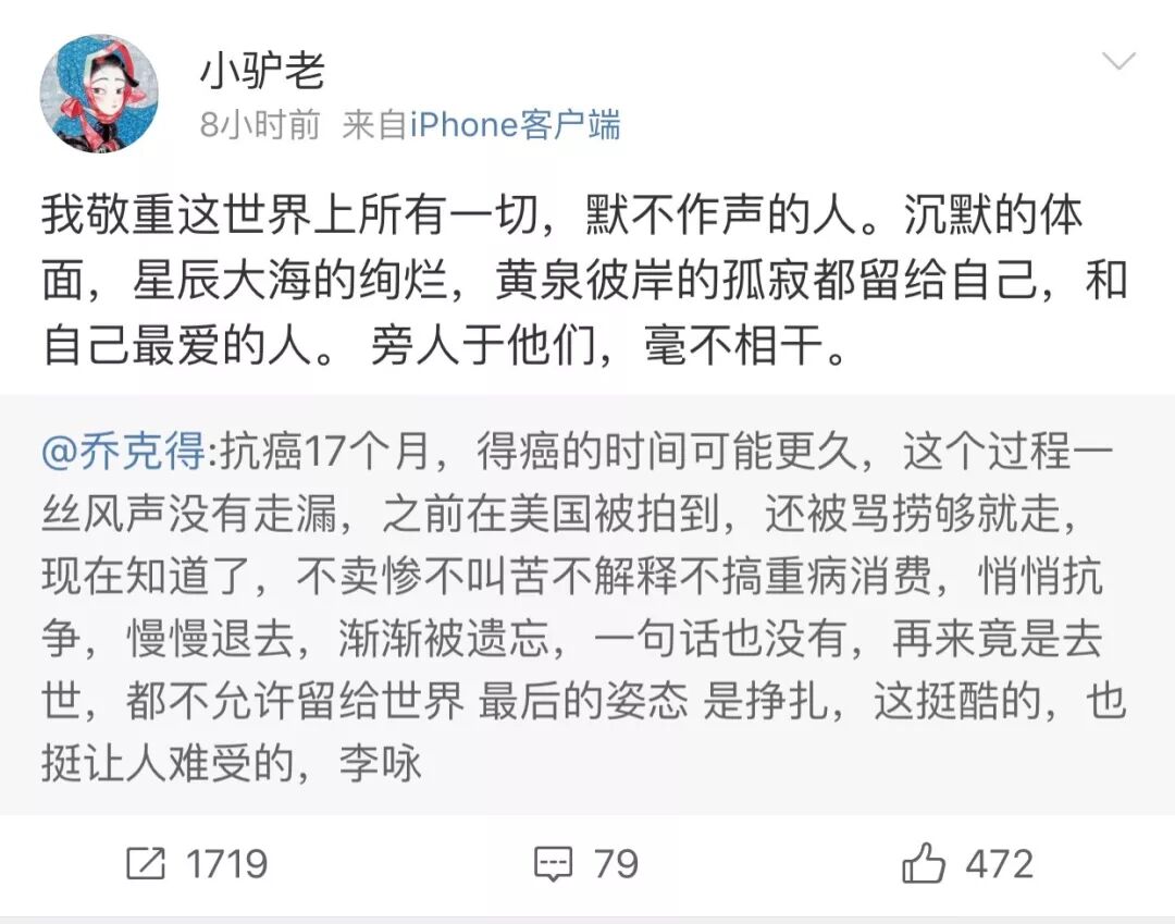 也许,这就是李咏的人生态度,直到最后一刻,也要有型、精致,姿态好看。