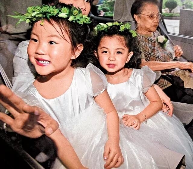 ▲在上山诗钠的婚礼上做花童。这张花童照简直是小精灵本灵了!