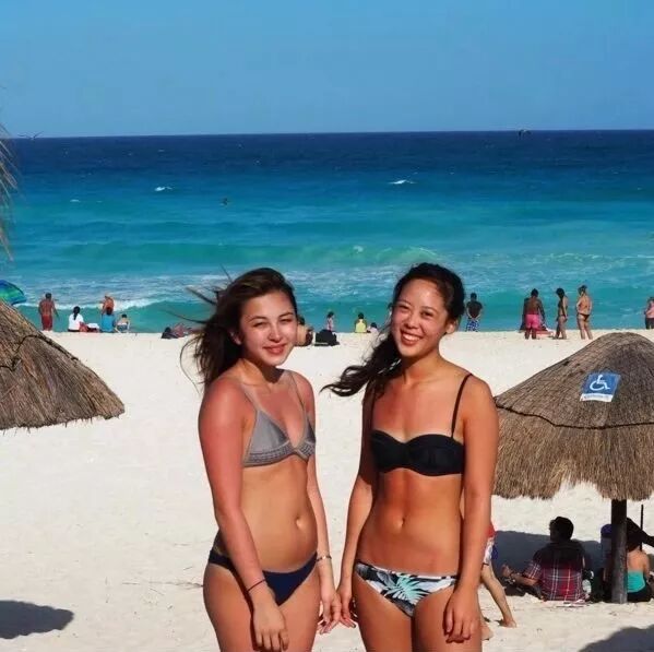 ▲希拉里(左)和朋友海滩度假,大方地将比基尼照晒到社交网站上。媒体就用“希拉里胸口红卜卜”做了一则新闻。现在各路媒体对上山诗钠的关注已经远远不及她的女儿。