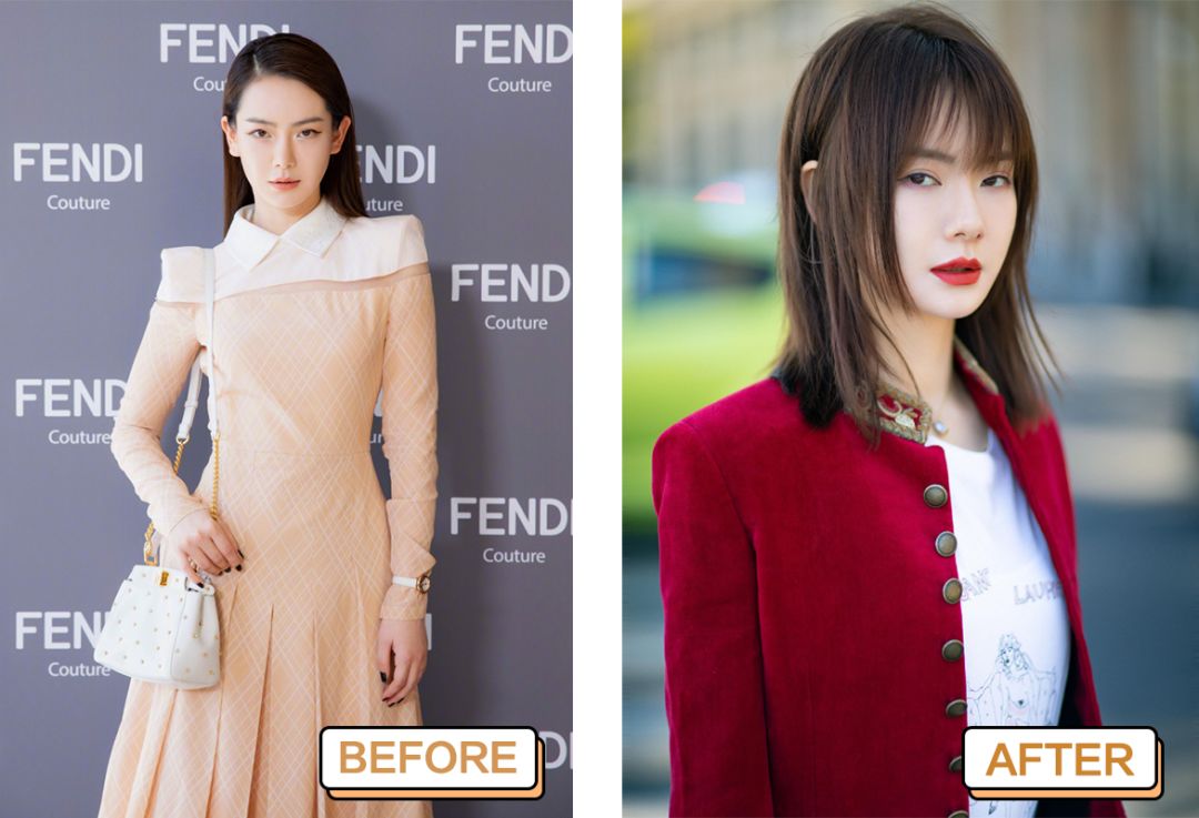对比一下以前黑长直的她,现在的辛芷蕾发量多了很多,其实这个跟怎么打理头发也有关系,这个部分放到后面再讲,咱们先看发型。