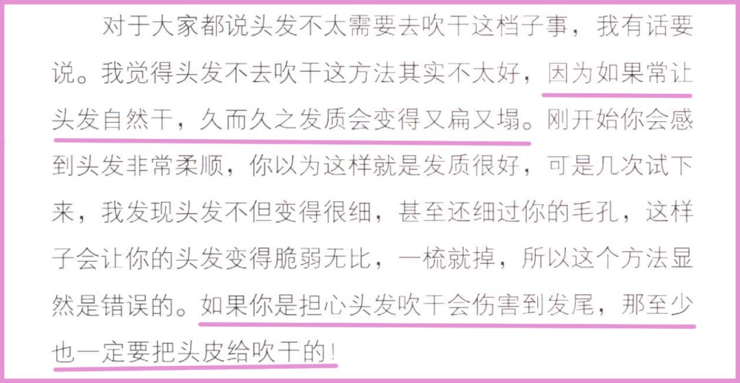 头发洗过之后一定要吹干,如果经常让头发自然干,久而久之头发不仅会变得又扁又塌,而且变得非常细软且脆弱无比,所以洗完头之后一定要坚持用吹风机把头发吹干。