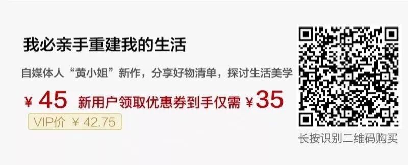 以上这篇文章摘自我的新书《我必亲手重建我的生活》,今天在宇宙大号一条以最低价开售,比我自己在出版社买的还要便宜,为了更美好的生活,走起!