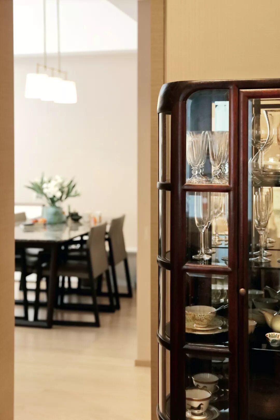 ▲我喜欢收集碗盘,在上海阿王的老家具店淘来透明置物架。