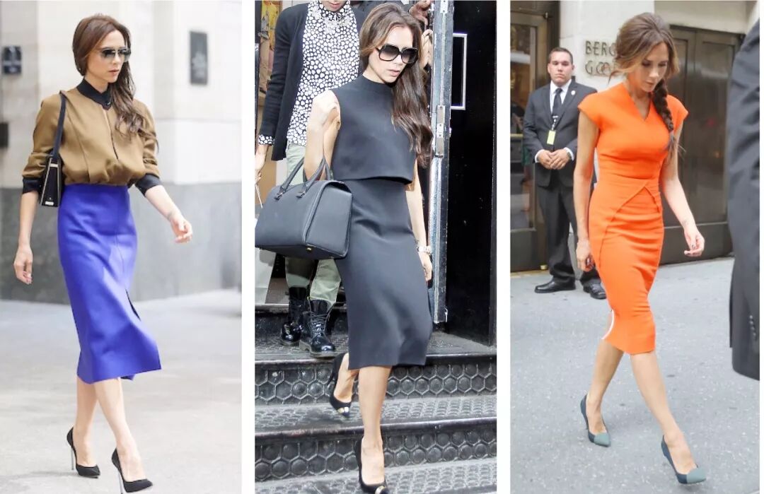 在这个时间段,最经典的“贝嫂站”也出现了,研究下你会发现,上半身后仰右腿前伸可以最大程度在镜头上优化自己的身高和比例,后收的右小腿能够让身材曲线看起来更好,努力收紧的肩膀可以让锁骨更明显,总之她在尽一切努力让自己看起来更完美。