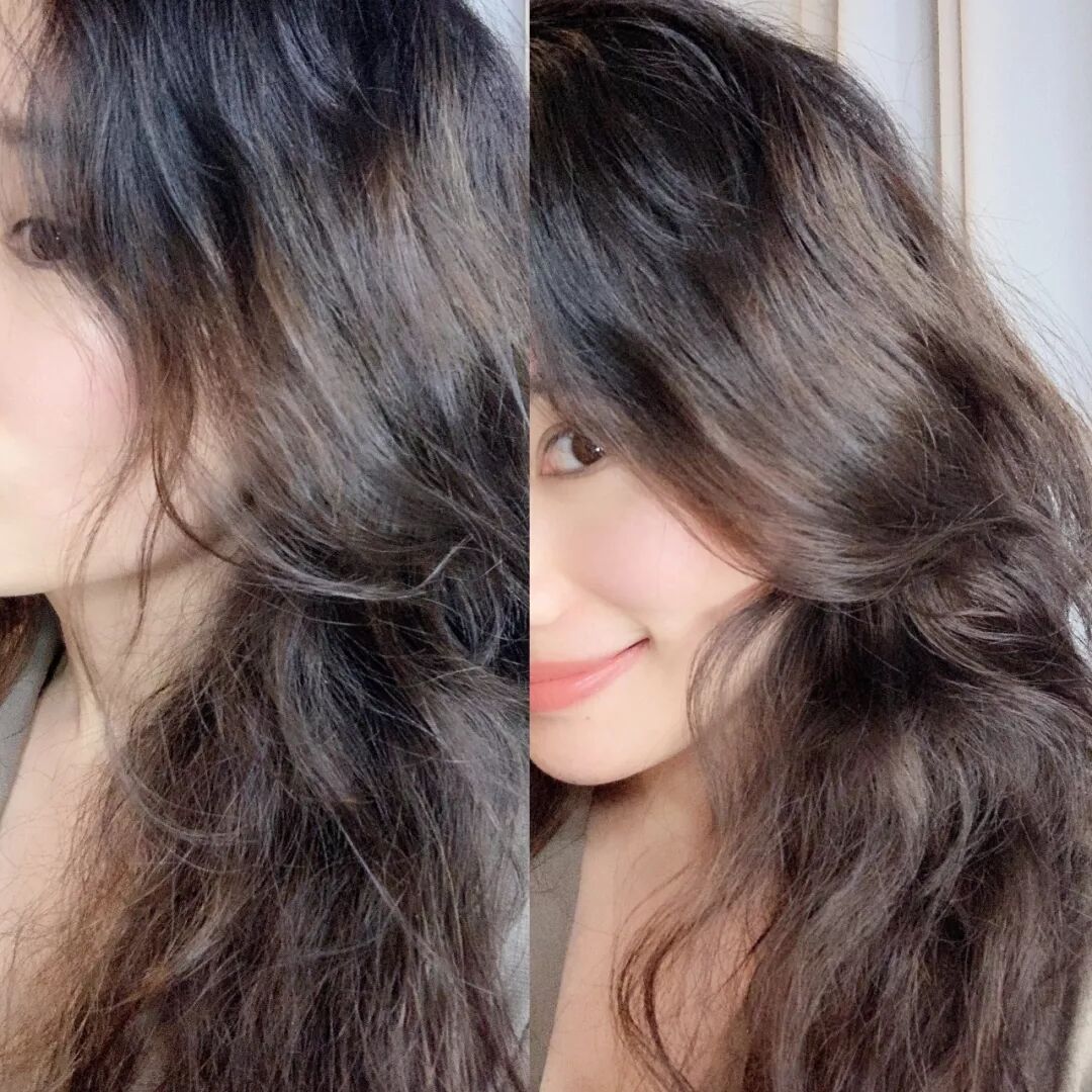 ▲看下前后对比,光泽感和水润感就出来了,毛躁和油腻明显变少。