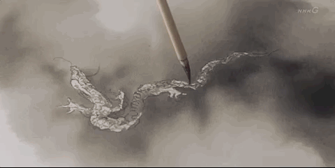▲在女儿画好的画面里,九十岁的大师添了一条龙,轻轻几笔,再点水墨点染,苍龙翻云腾雾,翻滚而上,展示出惊人的生命力,也成了大师的绝笔之作。