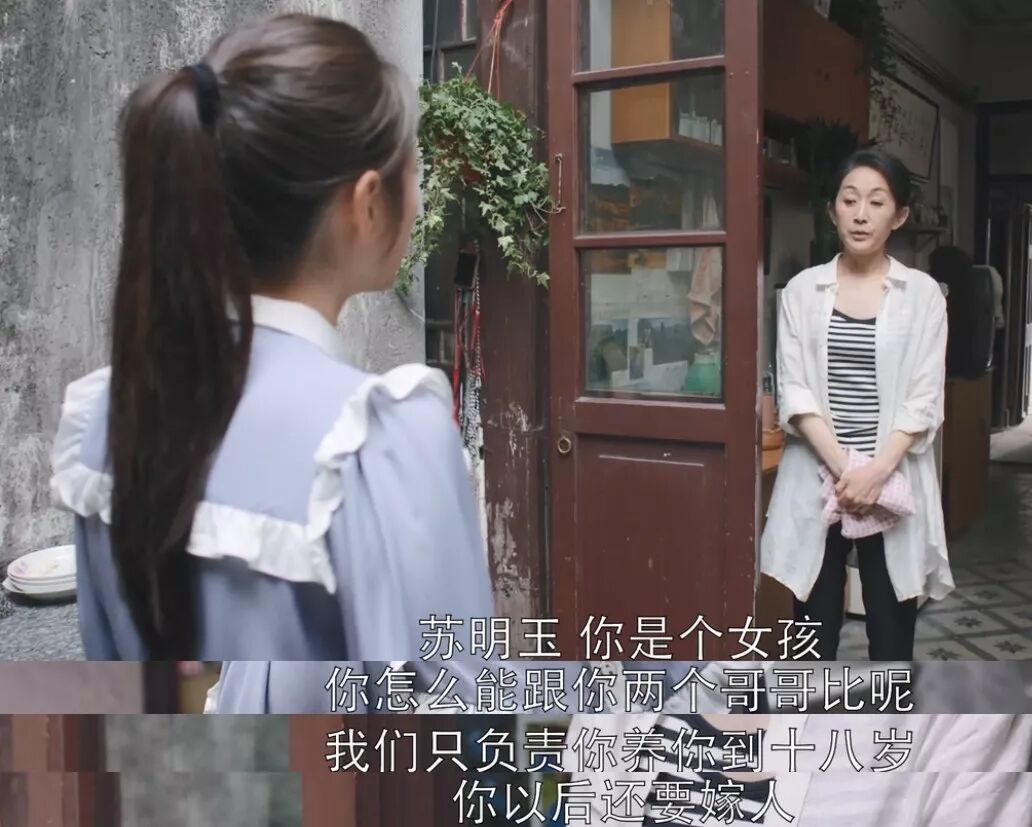 ▲苏母为了宁愿卖房也要供大儿子去美国读书,花钱找关系只为给二儿子找份工作,却连女儿要上大学的钱都不愿意出。两个哥哥吃好的、喝好的,苏明玉就只能吃清粥咸菜,还要帮哥哥洗碗洗衣服。连苏明玉都怀疑自己到底是不是亲生的。