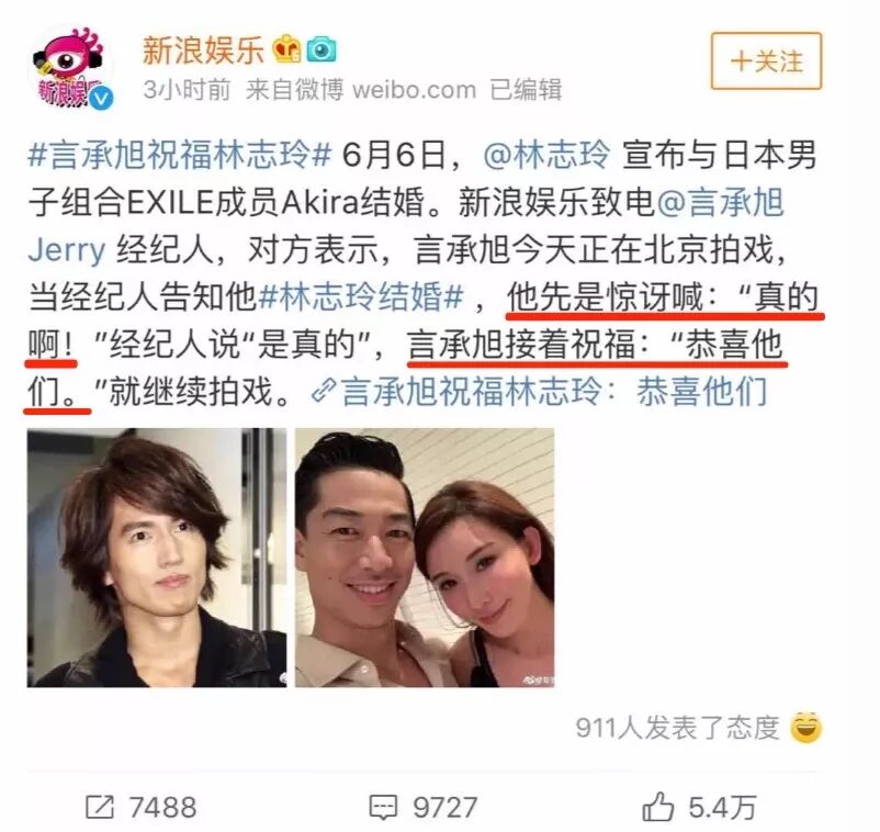 林志玲结婚,震动大半个娱乐圈,好多明星都献上祝福或发表感慨。