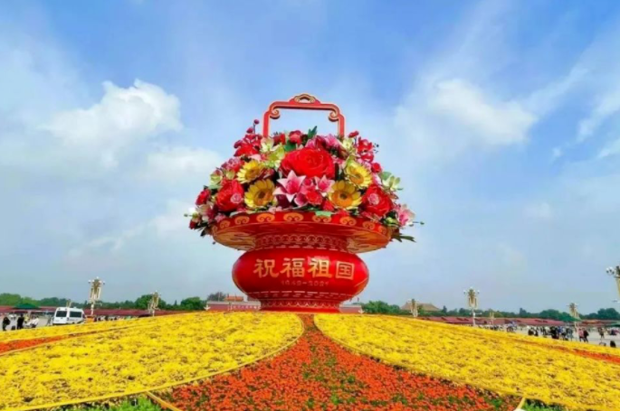 中华盛世空前欢,国庆盛妆景色艳。
