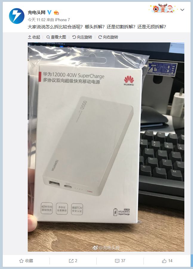 受关注的华为40W移动电源终于到达编辑部,开搞开搞。
