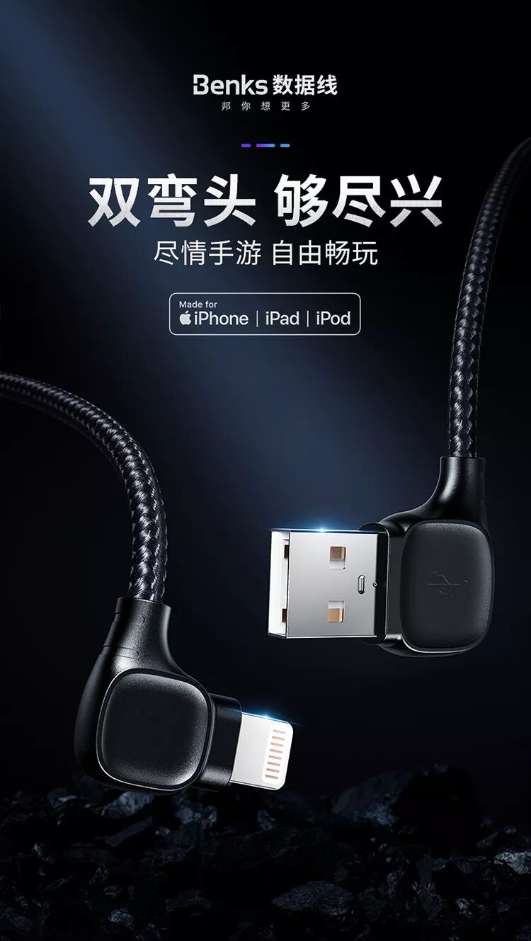 六、邦克仕MFi认证USB-A to Lightning弯头线