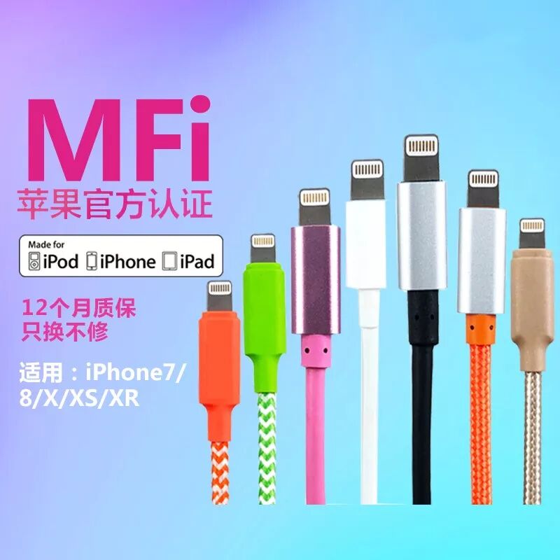散货MFi A2L数据线,有多种款式:1米PVC、1.8米PVC、3米PVC、3米尼龙,颜色也多种多样,总有一款适合你。数据线通过MFi认证,充电不弹窗。