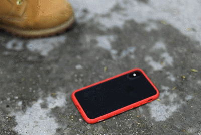 将手机从楼梯上丢下,四角与地面不断撞击,手机壳的非牛顿流体边框会加强防护性,四角的蜂窝缓冲区吸收落地时的撞击力,较少手机金属边框的受力,避免边框受到冲击变形。