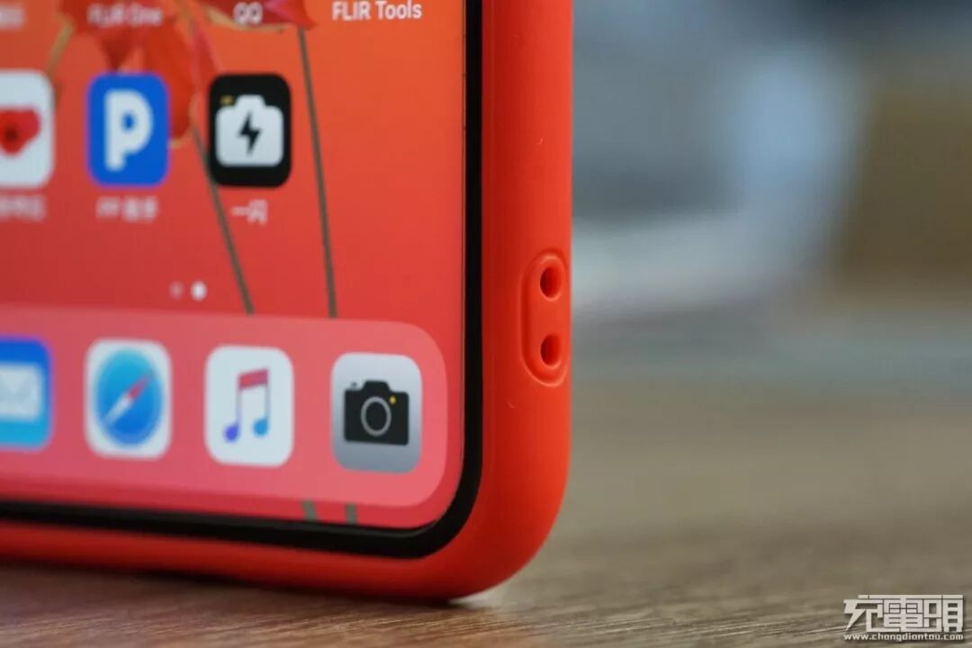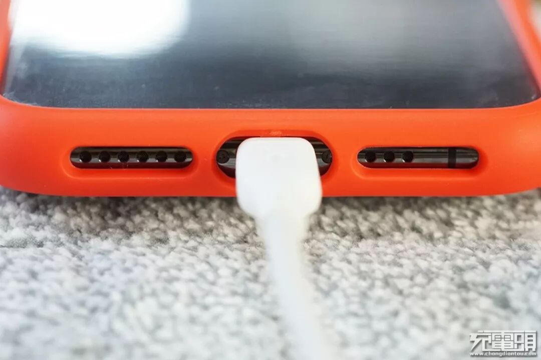 有一些较厚的全包式手机壳开孔较小,仅能使用原装充电线,稍微端头大点的第三方数据线就会被遮挡。带上CIKE WINGS 小红壳的iPhone XS实测插上一根第三方数据线完全不会影响到充电。