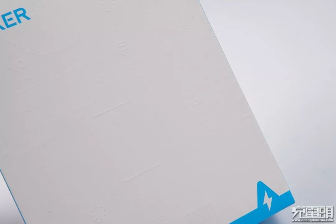包装盒上有一些ANKER产品的压印图案,简洁而不简单。